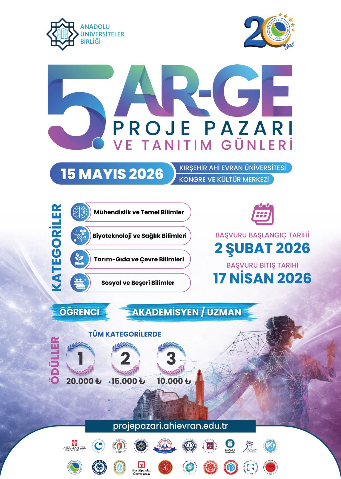 Anadolu Üniversiteler Birliği tarafından düzenlenen 5. AR-GE Proje Pazarı ve Tanıtım Günleri; öğrencileri, akademisyenleri ve alanında uzman isimleri aynı çatı altında buluşturuyor.
